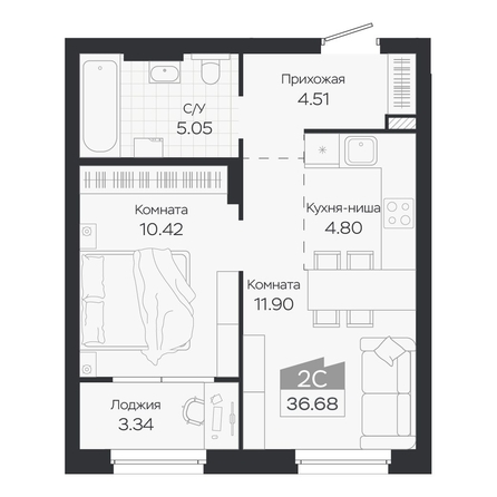 Общая площадь квартиры — 36.68 кв.м. Тип дома — монолит-кирпич. Компания-застройщик — ГРУППА МЕТА.