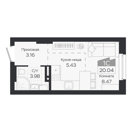 Общая площадь квартиры — 20.04 кв.м. Тип дома — монолит-кирпич. Компания-застройщик — ГРУППА МЕТА.