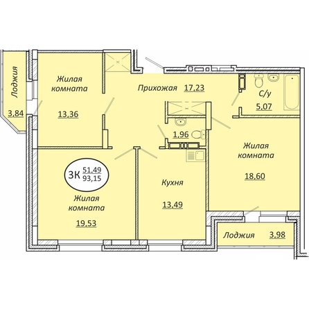 Общая площадь квартиры — 93.15 кв.м. Тип дома — монолит-кирпич. Компания-застройщик — СЗ Бизнеспроект.