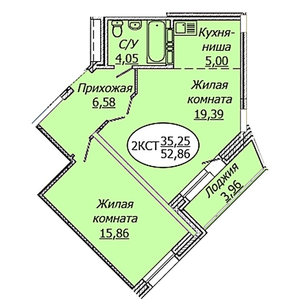 Общая площадь квартиры — 52.86 кв.м. Тип дома — монолит-кирпич. Компания-застройщик — БизнесСтрой.