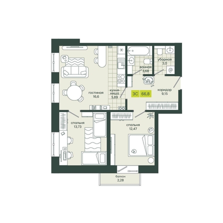 Для удобства жителей функциональные планировки квартир с продуманными решениями: просторными кухнями-гостиными, вместительными гардеробными и нишами, окнами в ванных комнатах, дополнительными санузлами, панорамными балконами и живописными видами на бор.