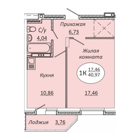 Общая площадь квартиры — 40.97 кв.м. Тип дома — монолит-кирпич. Компания-застройщик — БизнесСтрой.
