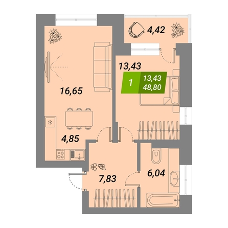 Продам 1-комнатную 48.8 кв.м. 2/29 этаж, монолит-кирпич, Новосибирск, Сухарная ул, 105/1.