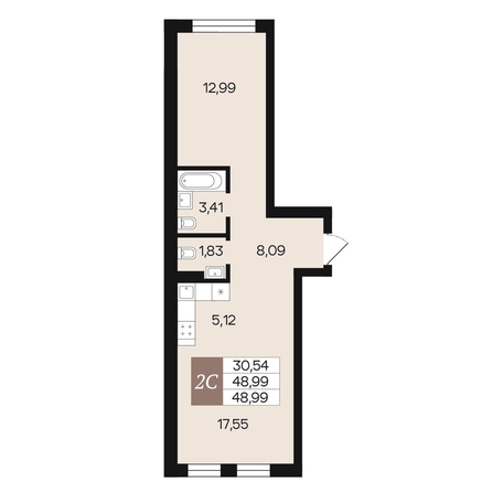 Общая площадь квартиры — 48.99 кв.м. Тип дома — монолит-кирпич. Компания-застройщик — Два Ключа девелопмент.