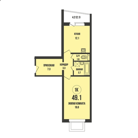 Общая площадь квартиры — 49.1 кв.м. Компания-застройщик — Энергомонтаж.