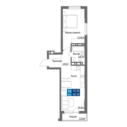 Общая площадь квартиры — 45.19 кв.м. Тип дома — монолит-кирпич. Компания-застройщик — Сибмонтажспецстрой.