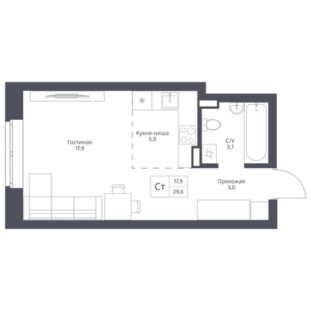 Продается 1-комн. студия с предчистовой отделкой. Квартира расположена на 6 этаже 17 этажного монолитно-кирпичного дома в Экограде «12 дворов» от группы компаний «ПОЛЯКОВ».