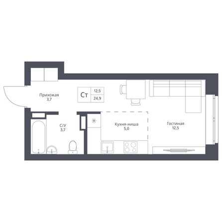 Продается 1-комн. студия с предчистовой отделкой. Квартира расположена на 8 этаже 17 этажного монолитно-кирпичного дома в Экограде «12 дворов» от группы компаний «ПОЛЯКОВ».