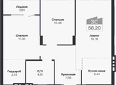Общая площадь квартиры — 58.2 кв.м. Тип дома — монолит-кирпич. Компания-застройщик — Группа МЕТА.