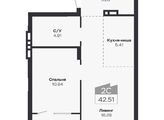 Общая площадь квартиры — 42.51 кв.м. Тип дома — монолит-кирпич. Компания-застройщик — Группа МЕТА.