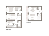 Двухуровневая квартира с кухней-гостиной и тремя спальнями в микрорайоне «Европейский берег». Особенности планировки: двухуровневая, разнесённые спальни, свободная планировка, терраса на крыше.
