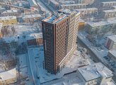 Этажность дома и стиль фасада выделяют здание среди окружающей застройки. Кирпич разных оттенков, ночная подсветка, правильная геометрическая форма - архитектуру можно рассматривать и любоваться каждой деталью.