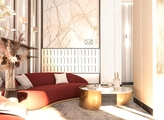 Пространство входных групп выглядит стильно и статусно, формируя первое впечатление о доме. В основе цветовых решений — оттенки шампани, терракота и антрацита. Они подобраны в тон фасадов домов квартала, что создаёт архитектурную преемственность и целостность проекта.