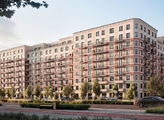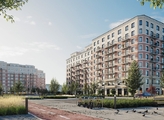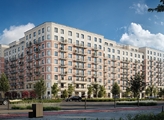 Первая очередь строительства состоит из двух секционных домов г-образной формы 7-9 этажей, которые образуют квартал. Фасады облицованы керамическим кирпичом и архитектурным текстурированным бетоном. Первые этажи высокие и оформлены прозрачным панорамным остеклением со стороны улицы. Дома не выглядят монолитными и тяжеловесными.