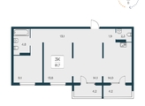 «В продаже 3-комнатная квартира, площадью 80.8, под номером 361 в новом Доме ЖК "Квартал на Игарской".»