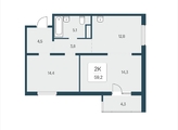 «В продаже 2-комнатная квартира, площадью 59.2, под номером 46 в новом Доме ЖК "Расцветай у Академгородка".» Новый 17-этажный жилой комплекс расположился у озера Каинка в окружении живописных лесных просторов.