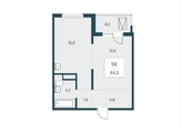 «В продаже 1-комнатная квартира, площадью 44.5, под номером 66 в новом Доме ЖК "Расцветай у Академгородка".» Новый 17-этажный жилой комплекс расположился у озера Каинка в окружении живописных лесных просторов.