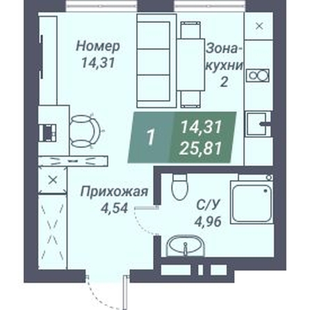 Общая площадь квартиры — 25.81 кв.м. Тип дома — монолит-кирпич. Компания-застройщик — Сибмонтажспецстрой.