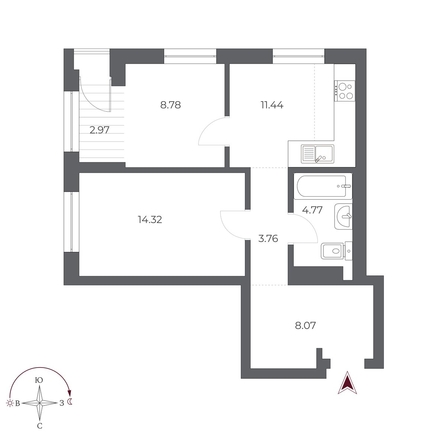 Общая площадь квартиры — 54.7 кв.м. Тип дома — монолит-кирпич. Компания-застройщик — Новый мир.