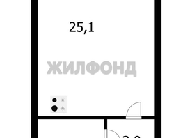 Общая площадь 39.2 м2, жилая 25.35 м2, кухня – 2.7 м2