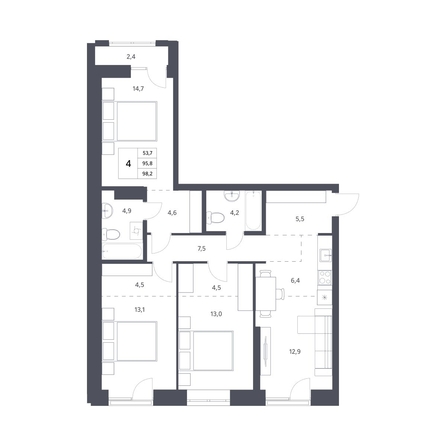 Продается 4-комн. студия с отделкой White box. Квартира расположена на 5 этаже 11 этажного монолитно-кирпичного дома в клубном комплексе «Новаторы» от группы компаний «Поляков».