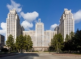 Один из принципов нашей компании: сохранять все лучшее в каждой локации. Архитектурное окружение дома «Нобель» представлено сталинской неоклассикой, именно поэтому специалисты компании «Новый мир» выбрали стиль ар-деко, который называют наследником неоклассицизма и модернизма. «Нобель» — это архитектура, устремленная вверх. 5 башен с величественными шпилями, благородный фасад из натурального гранита, увеличенная площадь остекления с применением архитектурного стекла. И — чего не встретишь в других проектах, — роскошная гранитная прогулочная колоннада — второй уровень благоустройства.