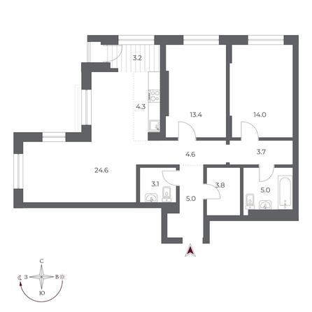 Общая площадь квартиры — 84.7 кв.м. Тип дома — монолит-кирпич. Компания-застройщик — Новый мир.