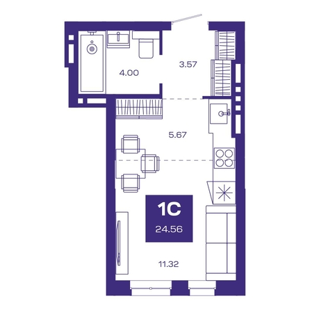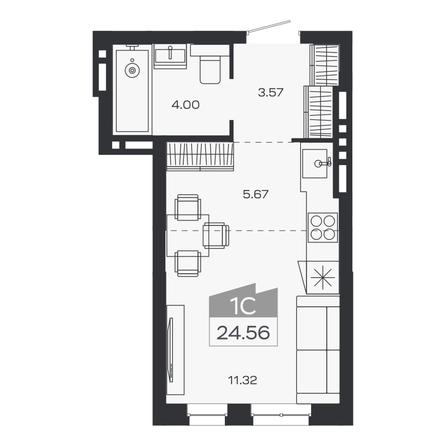 Общая площадь квартиры — 24.56 кв.м. Тип дома — монолит-кирпич. Компания-застройщик — Группа МЕТА.