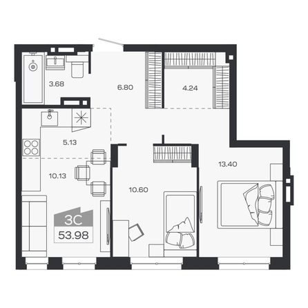 Общая площадь квартиры — 53.98 кв.м. Тип дома — монолит-кирпич. Компания-застройщик — Группа МЕТА.