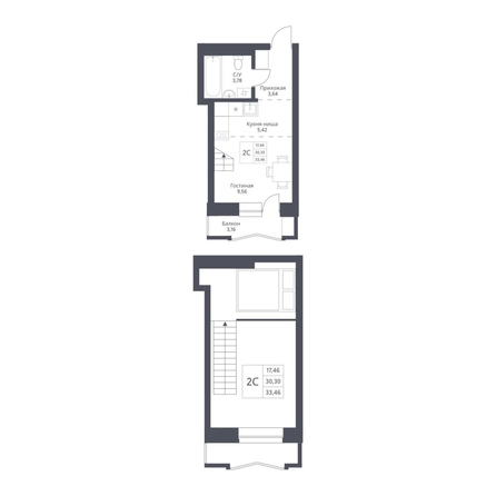 Продается 2-комн. студия с отделкой White box. Квартира расположена на 2 этаже 24 этажного монолитно-кирпичного дома в Акцентном доме «Актив» от группы компаний «Поляков».