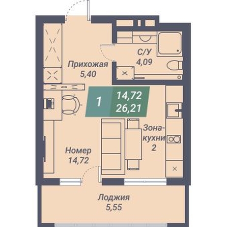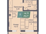 Общая площадь квартиры — 26.21 кв.м. Тип дома — монолит-кирпич. Компания-застройщик — Сибмонтажспецстрой.
