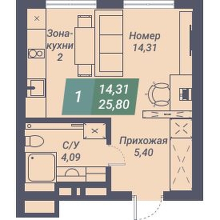 Общая площадь квартиры — 25.8 кв.м. Тип дома — монолит-кирпич. Компания-застройщик — Сибмонтажспецстрой.