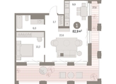 Квартира с кухней-гостиной и одной спальней в квартале «Мылзавод». Особенности планировки: предчистовая отделка, терраса на крыше.