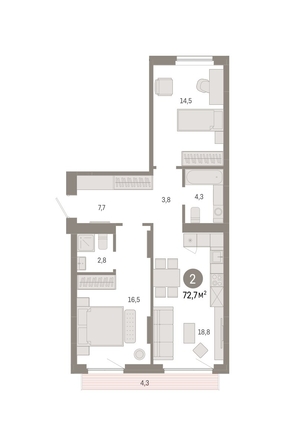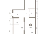 Квартира с кухней-гостиной и двумя спальнями в квартале «Лебедевский». Особенности планировки: окна на две стороны, разнесённые спальни, предчистовая отделка, мастер-спальня, балкон.