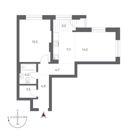 Общая площадь квартиры — 56.5 кв.м. Тип дома — монолит-кирпич. Компания-застройщик — Новый мир.