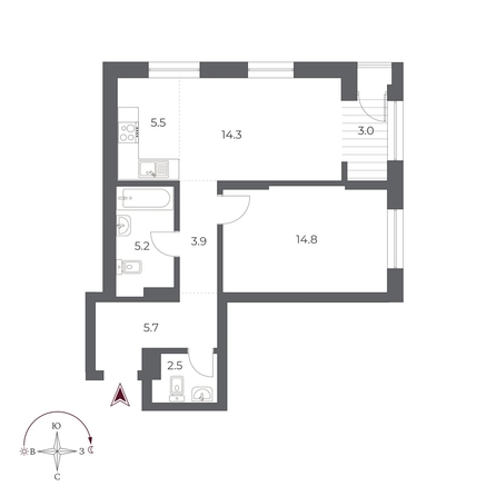 Общая площадь квартиры — 54.9 кв.м. Тип дома — монолит-кирпич. Компания-застройщик — Новый мир.