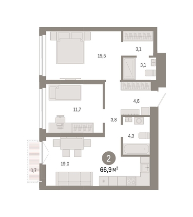 Квартира с кухней-гостиной и двумя спальнями в микрорайоне «Европейский берег». Особенности планировки: гардеробная, предчистовая отделка, мастер-спальня, балкон. № квартиры в нашей базе: ЕБГ45-Ж8.17.1. Номер объявления SD54-993641.